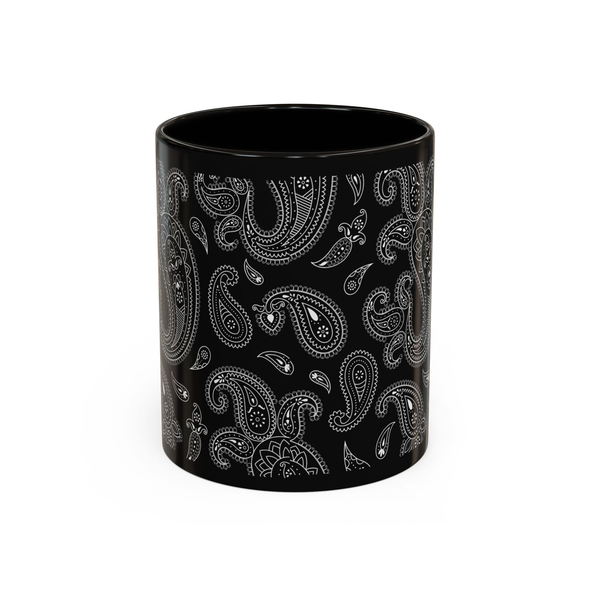Black Paisley Ceramic Mug — 11oz & 15oz Stylish Pattern