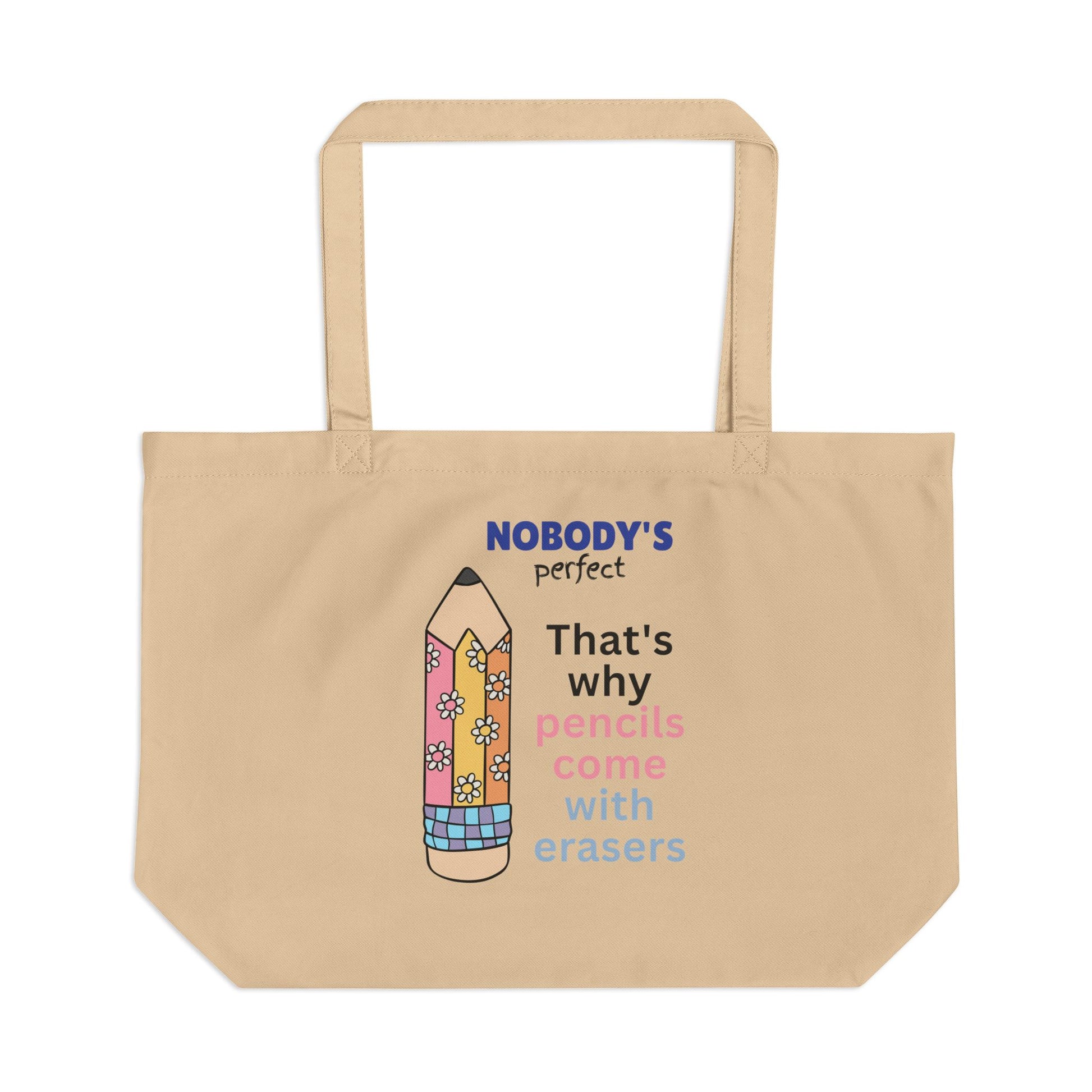 Canvas Tote — “Nobody’s Perfect” Pencil & Eraser Design, Teacher Gift