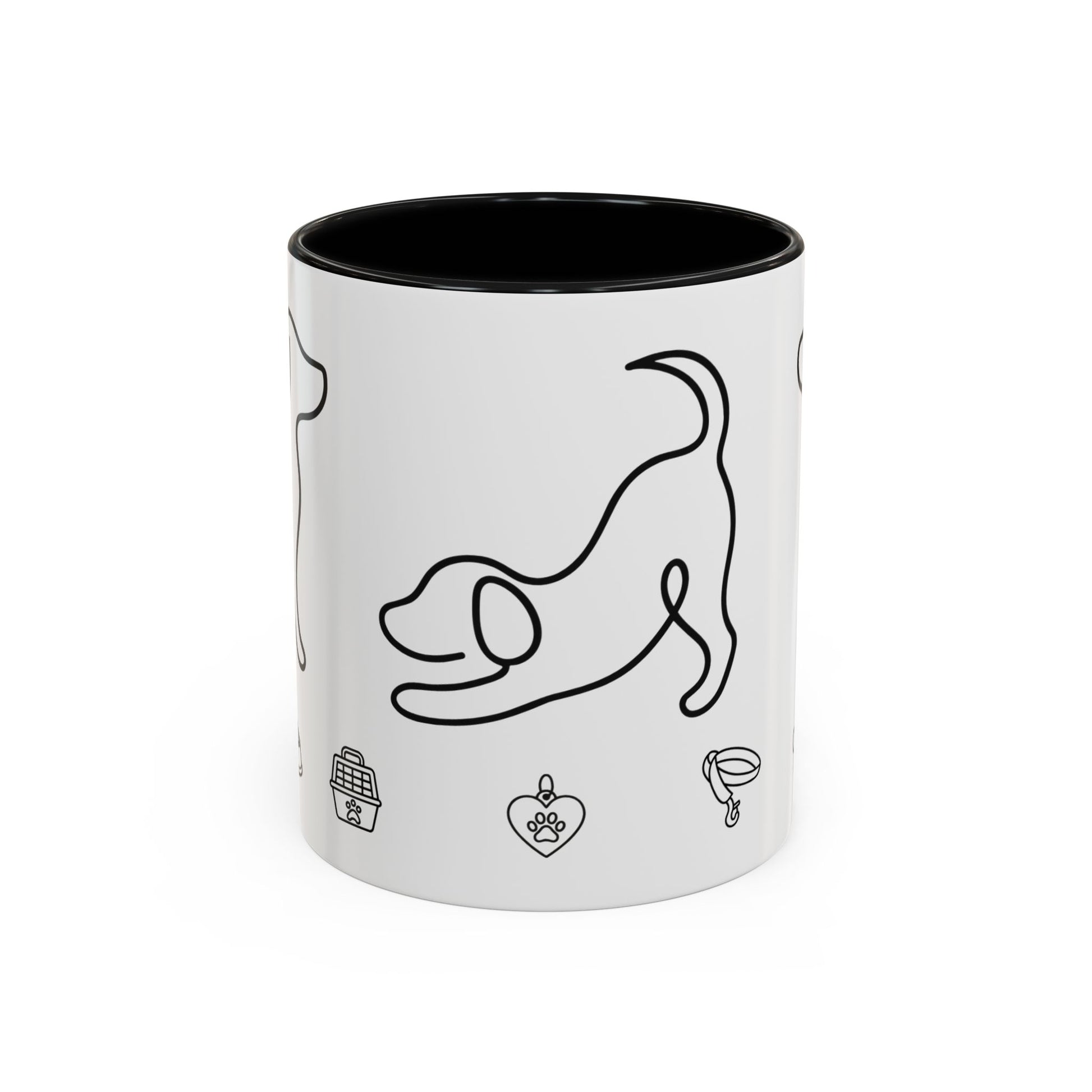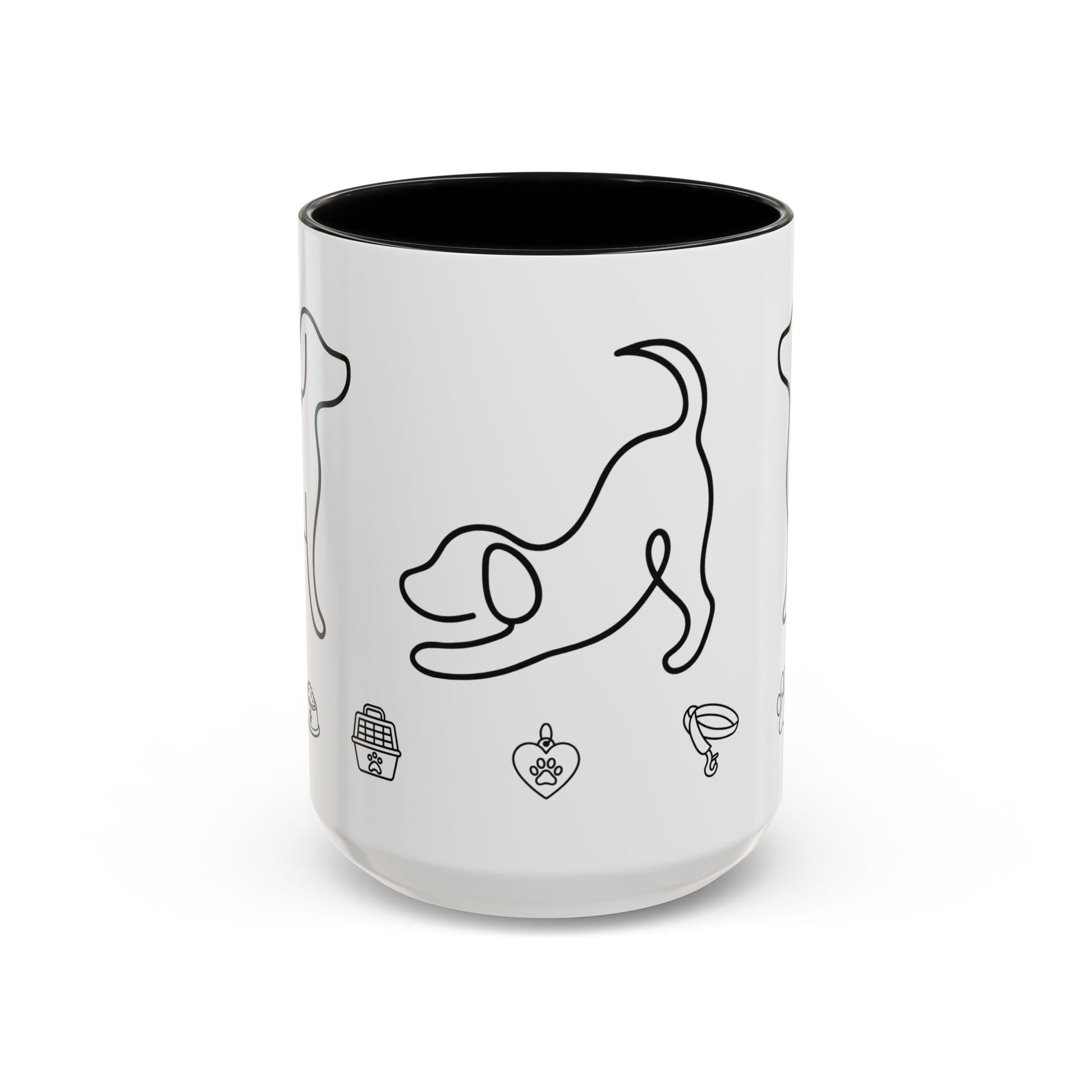 Dog Line Art Accent Coffee Mug — Minimal Paw & Pet Icons (11/15oz)