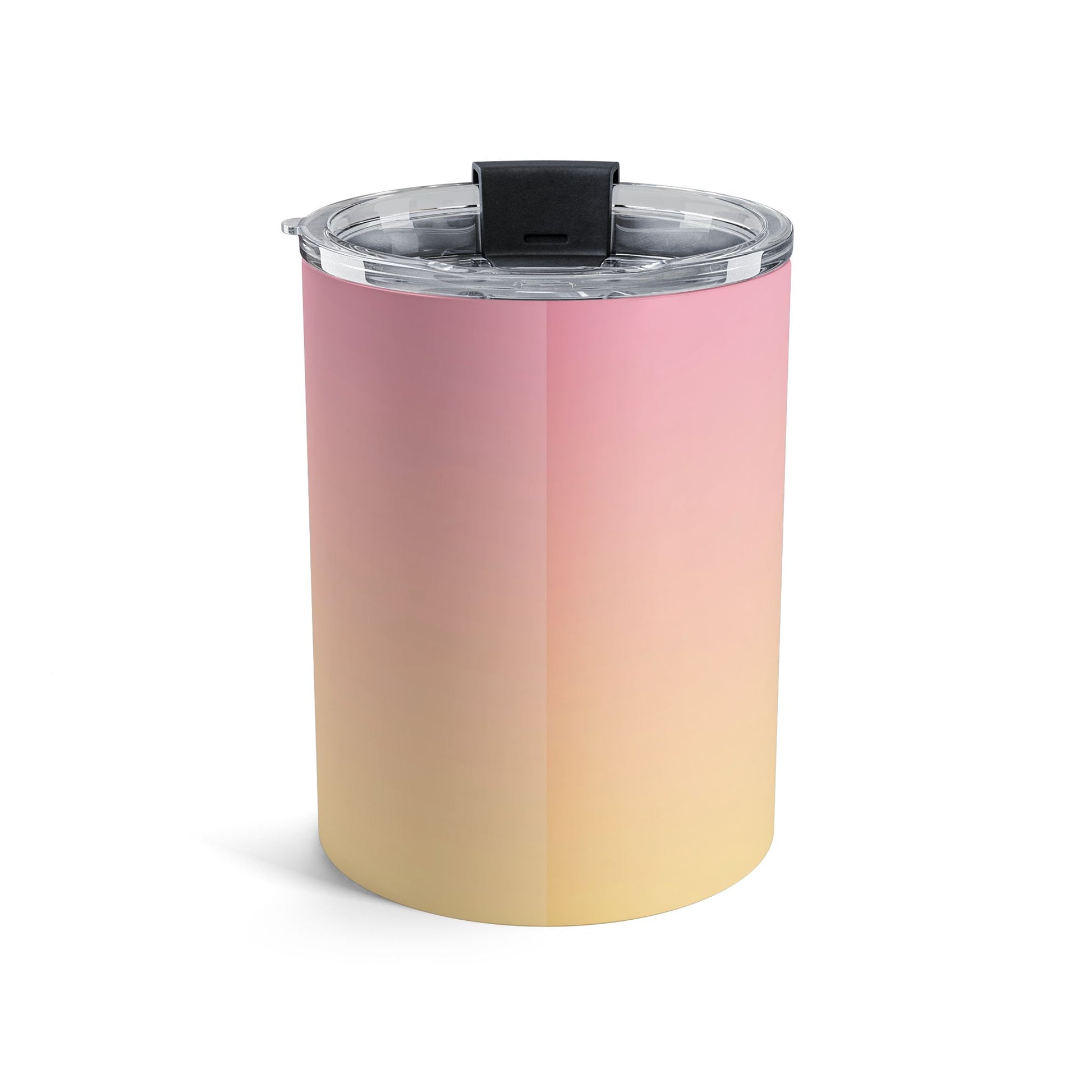 Sip with a playful spark. This 10oz stainless steel tumbler wraps a sunset-pink-to-gold ombré around a bold, retro Gemini illustration — two mirrored figures sitting close, framed by tiny stars and a stylized zodiac glyph. It feels like morning coffee shared with your closest confidante or an evening tea while scribbling plans for the week. Lightweight and comfortable to hold thanks to rounded corners, it slips into a tote for markets, desks, or bedside tables. The clear push-on lid gives spill-resistant convenience while letting you see your drink; the sturdy vacuum-insulated body keeps warmth or chill where it belongs so your beverage stays just how you like it.