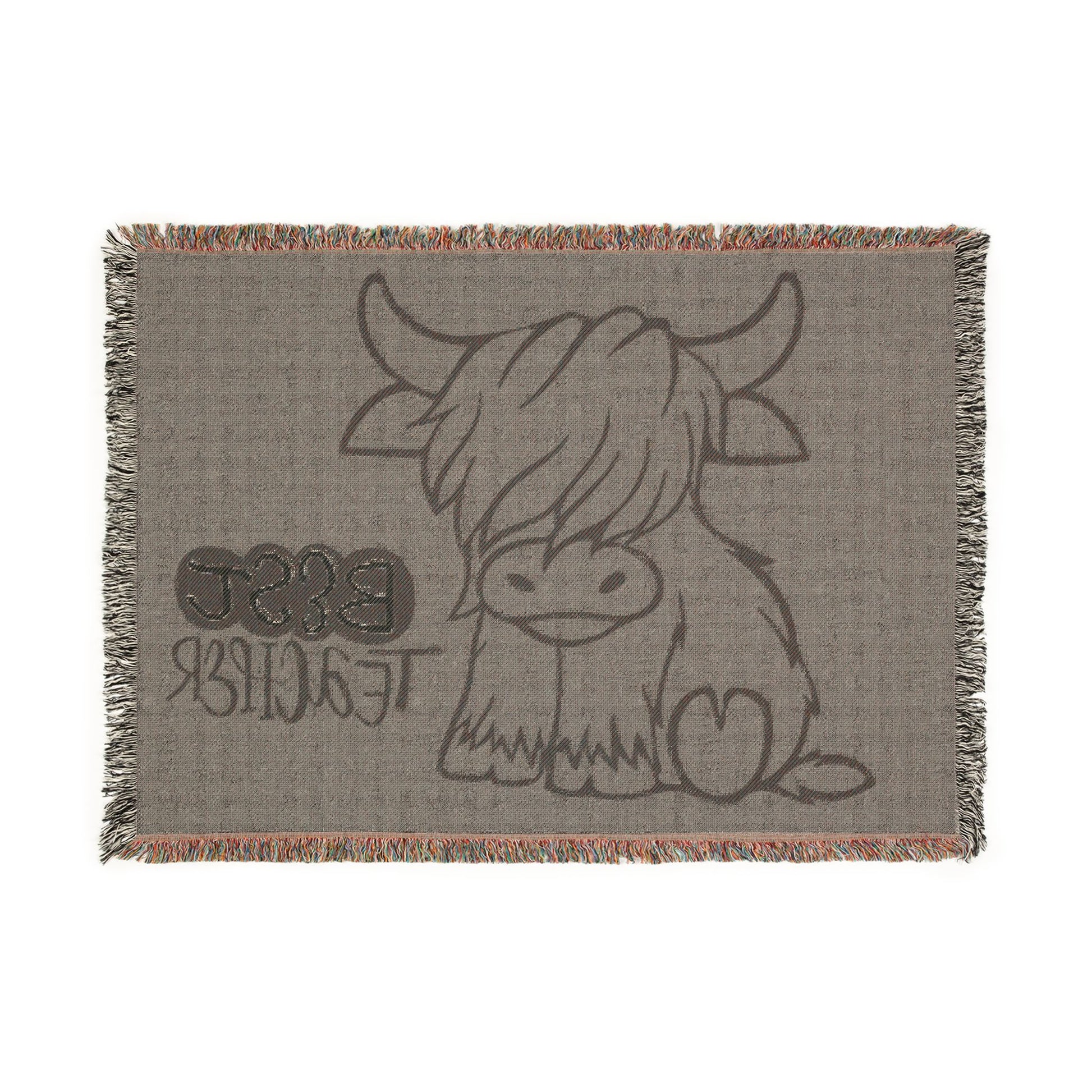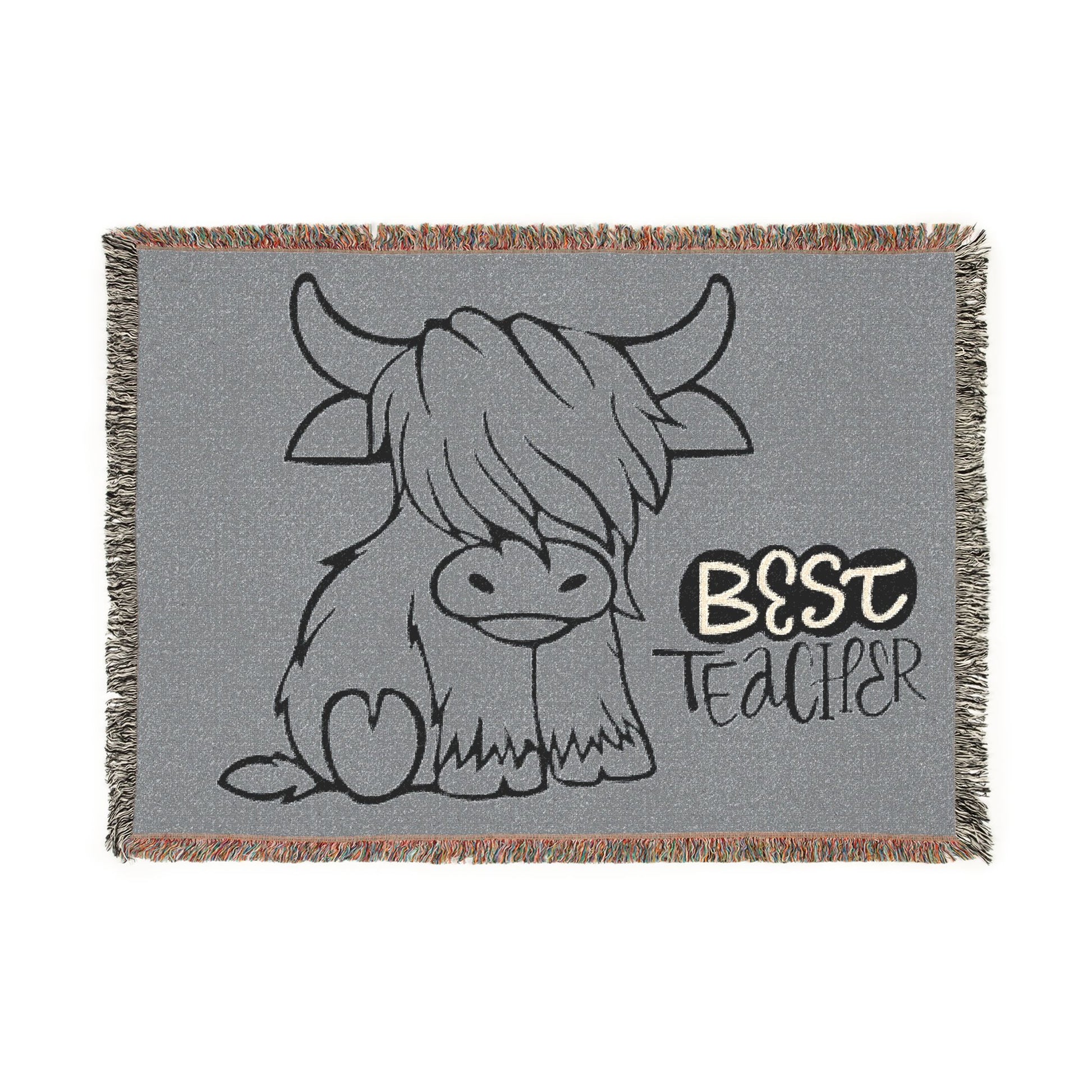 Highland Cow "Best Teacher" Woven Blanket — Cozy Teacher Appreciation Throw