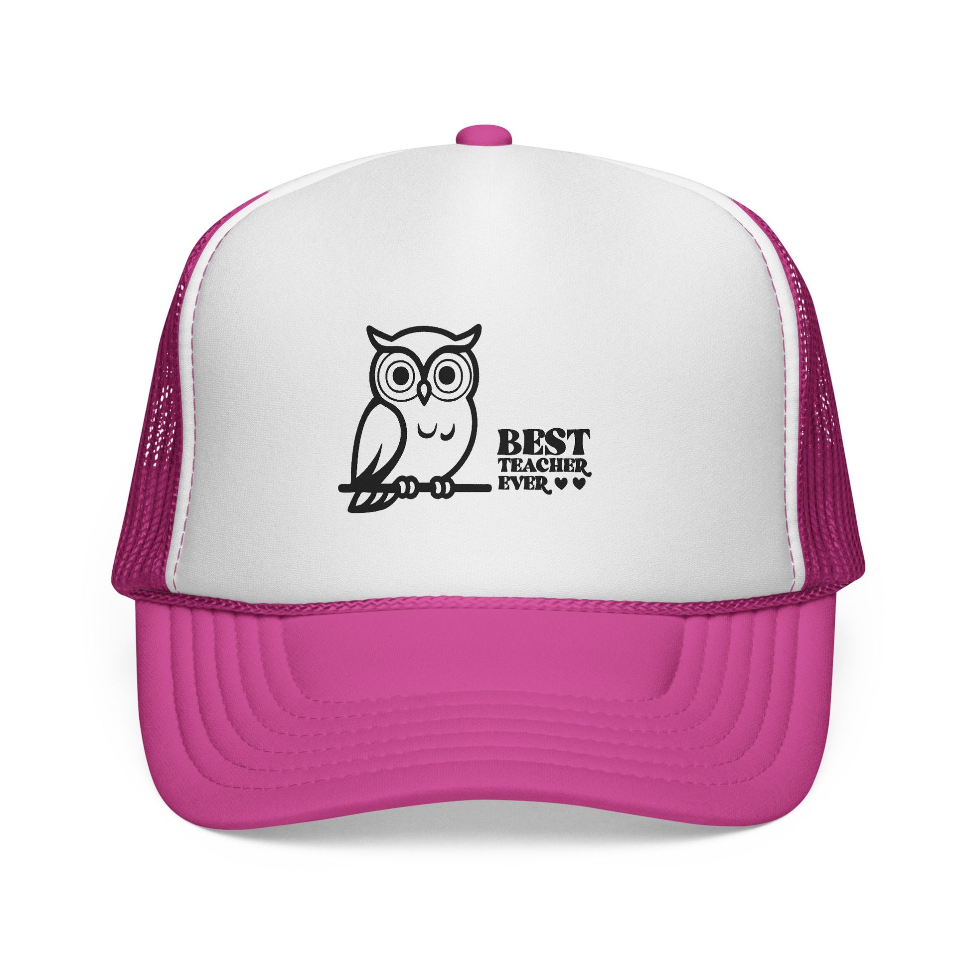Trucker Cap — "Best Teacher Ever" Owl Embroidered Hat
